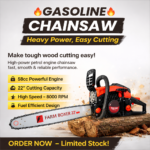 Chainsaw combines high performance with better fuel economy and lowers exhaust emissions. Most suitable for medium-sized tree cutting, also good for small and large-size tree cutting, trimming and pruning, and firewood cutting. It has a smooth handle grip to work more efficiently. It has a 3-point anti–vibration system also which makes this chain saw more balanced, maneuverable, and comfortable to use. Designed for quicker, smoother, and easier pull starts. Get right to work on lawn care, yard work, wood slicing, and farm Garden And Ranch. A powerful motor and sturdy guide bar help in smooth cutting operations, ergonomic design, and proper weight of balance to reduce fatigue. Care instructions: special safety precautions must be observed to reduce the risk of personal injury when working with a chain saw because of the very high chain speed and very sharp cutters