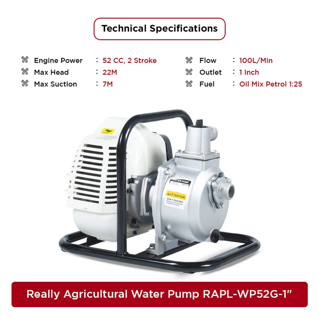 Petrol water pump is an economical and powerful petrol-driven water pump. The water pump is perfect for garden work, irrigation work, and agriculture work. The flow rate can be adjusted at any time. Made to last in the long run, you can rely on these engines to do their job, and do it well. Developed for both draining and irrigation Water pumps incorporate the most advanced 2-stroke technology assuring you of the most reliable performance. The high-head water pump is our specialty and our pumps are very useful in hilly regions satisfying the needs of farmers and gardeners at high altitudes.