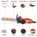 Introducing the Electric Chainsaw with a 16-inch Guide bar by BSC Power, the perfect tool for your tree-cutting needs. Whether it’s tree limbing, pruning branches, or clearing fallen trees from your path, this chainsaw is up to the task. This electric chainsaw offers a range of exceptional benefits, making it stand out in the market. With its 16 inches guide bar and chain, it provides efficient cutting capacity. The key USPs include low maintenance requirements, making it a hassle-free choice. Its electric operation ensures reduced emissions and minimal noise, making it an environmentally friendly option. Weighing less than traditional gas chainsaws, it’s easy to handle and transport. The powerful motor delivers superior performance and an excellent power-to-weight ratio, making it an ideal choice for both amateurs and professionals. Make your outdoor tasks a breeze with the Electric Chainsaw by BSC Power.